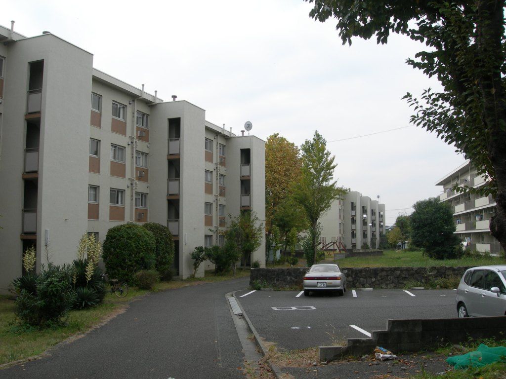 バス停から住宅街を北へ歩いて行くと、やがて緑に囲まれた団地群が見えてきますが、これが電々アパートことNTT玉川中町社宅です。その敷地の広さにまず驚かされますが、世田谷区深沢に隣接する立地でこれほど広大な敷地が、どれほどの資産価値になるのか、ちょっと想像もつきません。そしてその広大な敷地にゆったりと配置された建物が全部で10数棟。そのゆったり度合いに、ついため息が出てしまうほどです。敷地中央には広場があり、お弁当を広げた親子連れの姿もちらほら見えています。建物の老朽化はやむを得ないとしても、全棟日当たりも抜群で、住環境としては最適な団地空間のように思えます。