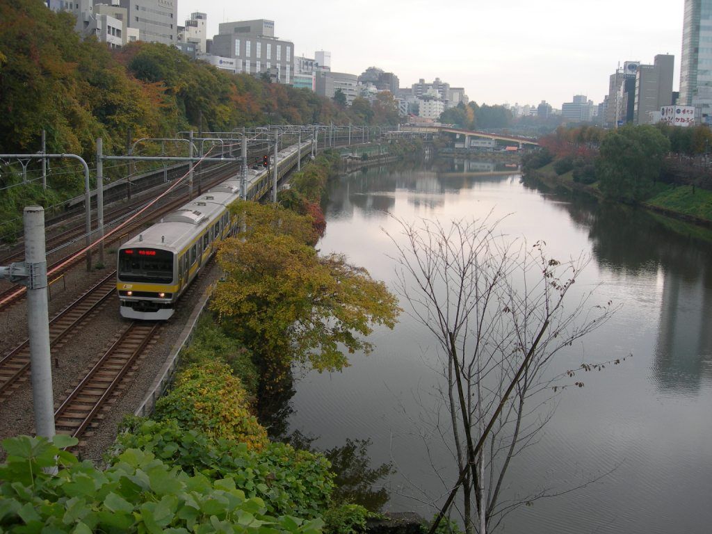 坂下に続くのは外濠を渡る新見附橋ですが、よく見ると橋状なのはJRの線路を跨ぐ部分のみで、濠を越える部分は築堤になっており、左右の濠の水位を調整するような役目を担っているらしく思われます。「見附」を名乗る橋ですが、江戸城外郭門の見附とは関係が無く、明治期に麹町と牛込の行き来の便の為に架けられた橋で、数ある外濠の橋の中では、最も存在感の薄い橋かもしれません。