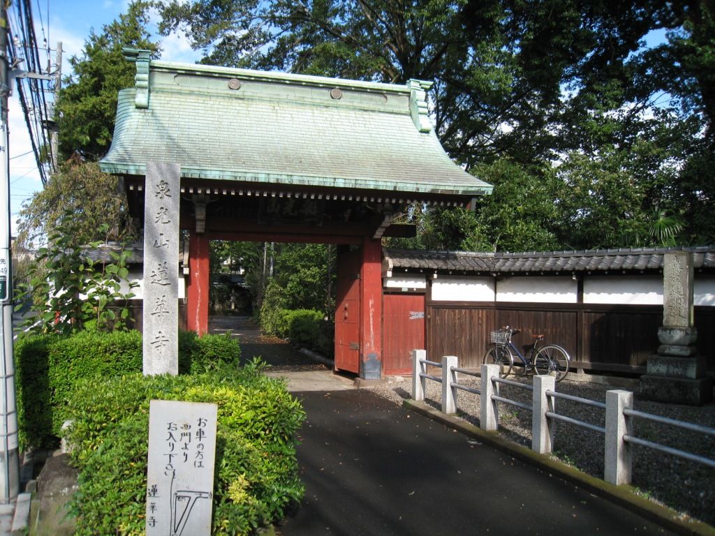 早稲田通りといえば、中央線に並行した中野・杉並エリアの幹線道路であり、片側1車線の道路は常に渋滞気味で、周囲の街並みにも「お伊勢の森」の名にふさわしいような景観は見られませんが、近くにそれらしき名残だけでもないかと地図を広げてみると、バス停から比較的近い場所に、大きく緑色で描かれた「森」が2ヶ所あることに気付きます。まずはそのひとつ目、バス停から中野区側に少し入ったところの蓮華寺を訪ねてみます。