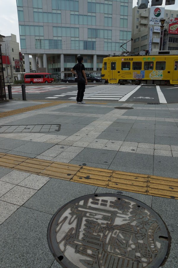 さて今回は、マンホール蓋撮影のバリエーションをご紹介いたします。今回ご紹介するのは、そう「ご本人登場!」です。Twitter のマンホール蓋コミニティで名付けた撮り方です。
